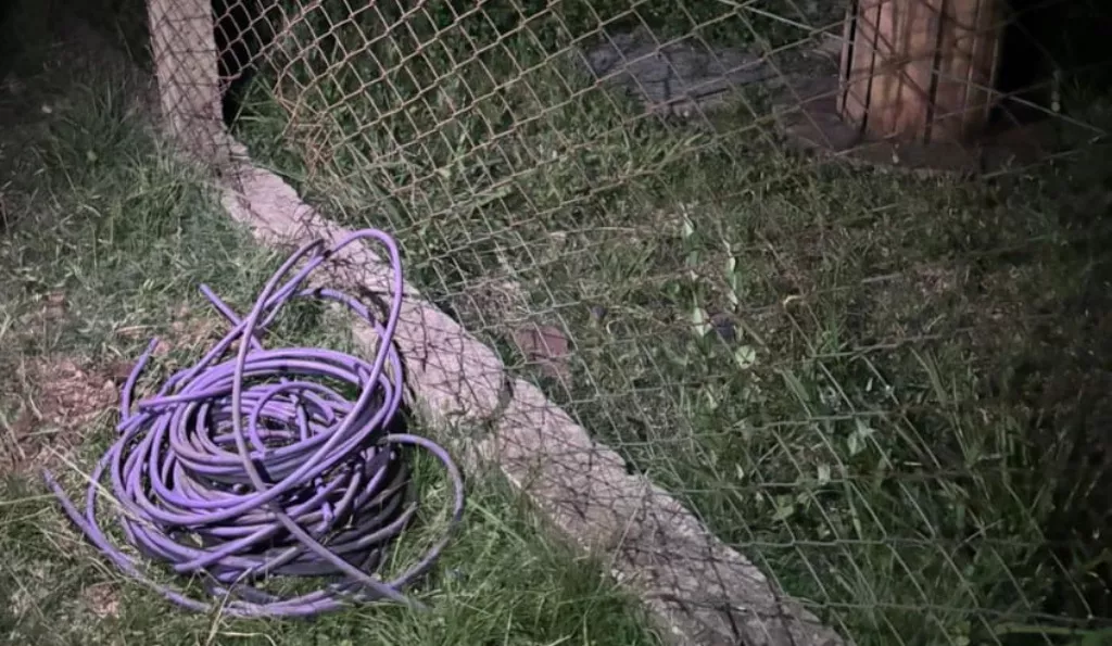 Luego se observaron daños en el alambrado perimetral y un rollo de cable fuera del recinto. Tras identificarse como personal policial y proceder a la requisa de los sospechosos, se encontró en poder de uno de ellos un destornillador tipo Philips. También se secuestraron aproximadamente 27 metros de cable eléctrico cortado.
