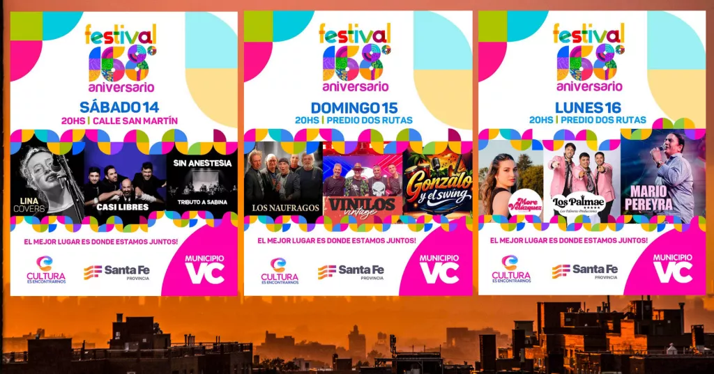 Con la premisa de que “el mejor lugar es donde estamos juntos”, la Municipalidad de Villa Constitución invita a la comunidad a celebrar el 168° aniversario de la ciudad con un festival musical de tres jornadas, que se desarrollará entre el sábado 14 y el lunes 16 de febrero. Todas las actividades son de entrada libre y gratuita.